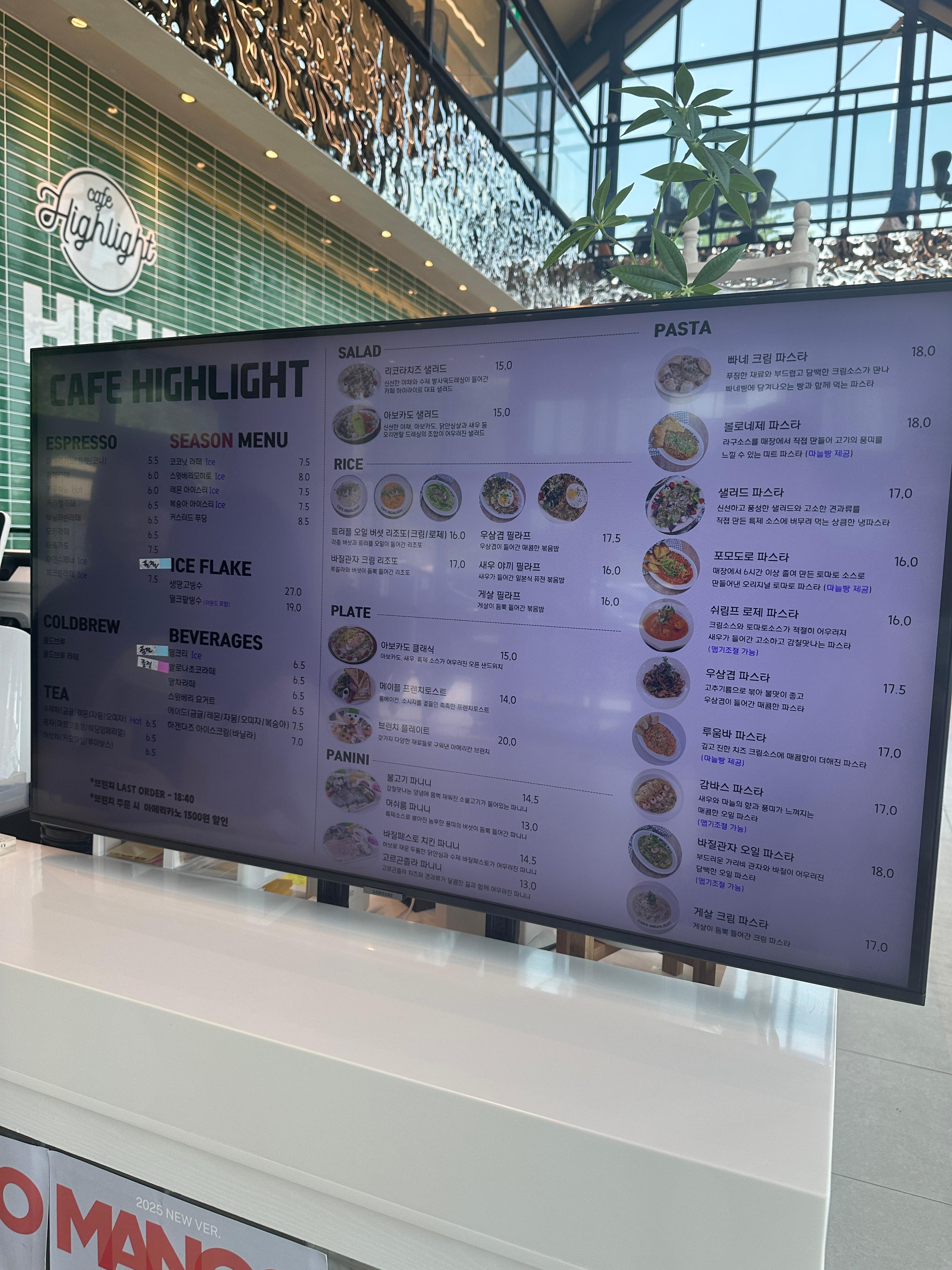 메뉴판이 크게 센터에 있고, 다양한 메뉴가 있어서 고르기 힘들었어요.