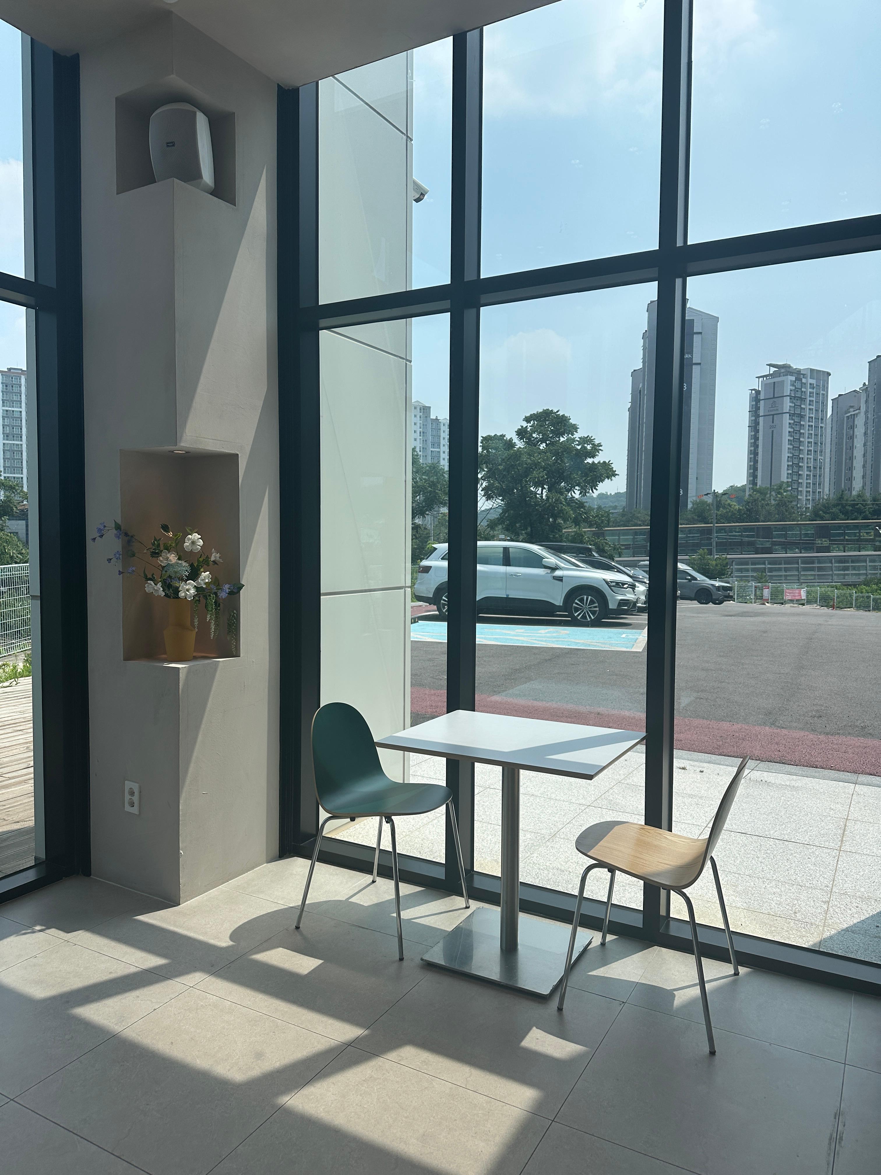 주차장 쪽 창가자리가 비어 있어서 자리를 잡았습니다.