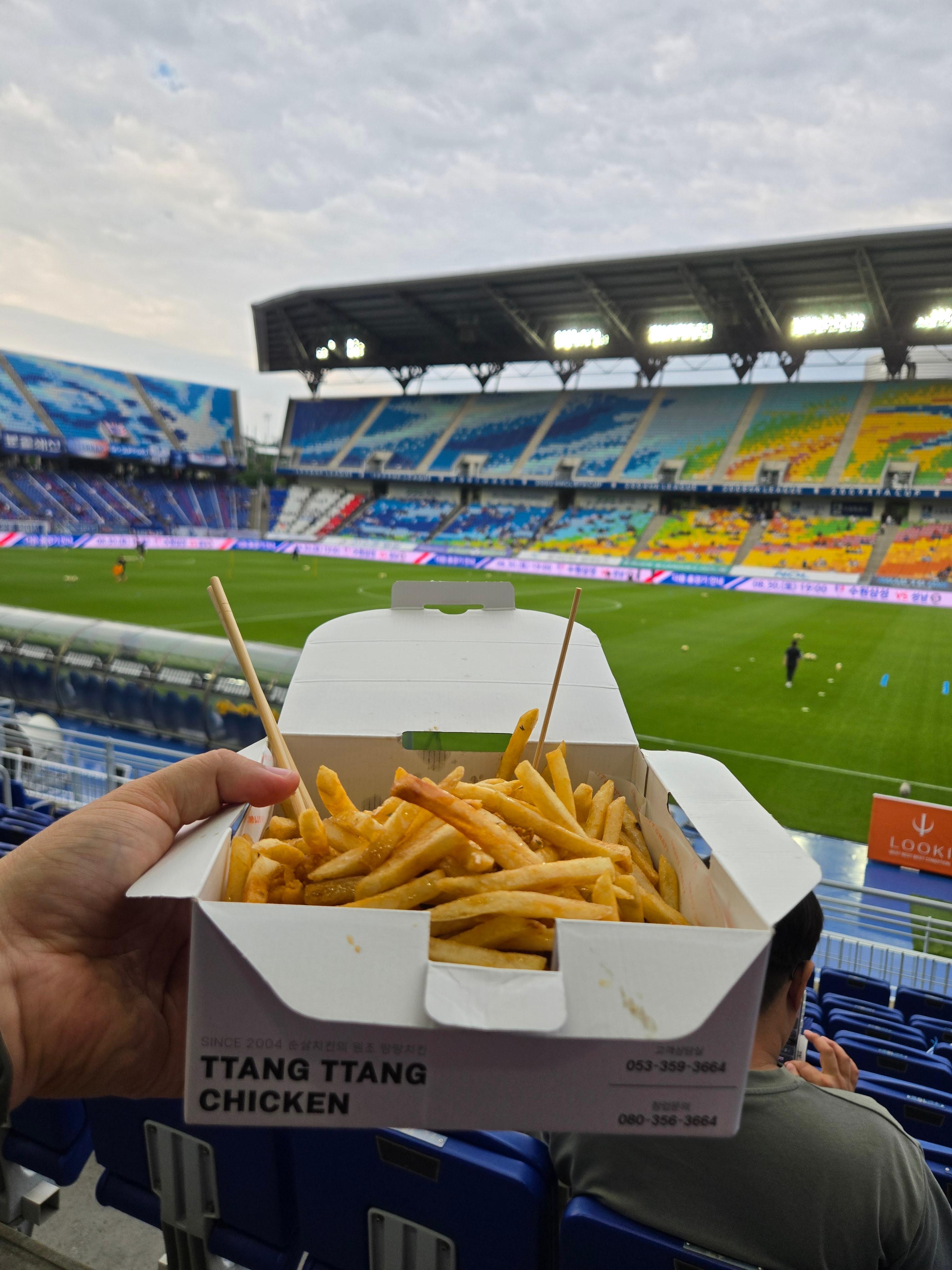 입장 후에도 티켓을 소지하고 있으면 바깥으로 나갔다 들어올 수 있어, 관람하면서 먹을 치킨도 나가서 사왔답니다.